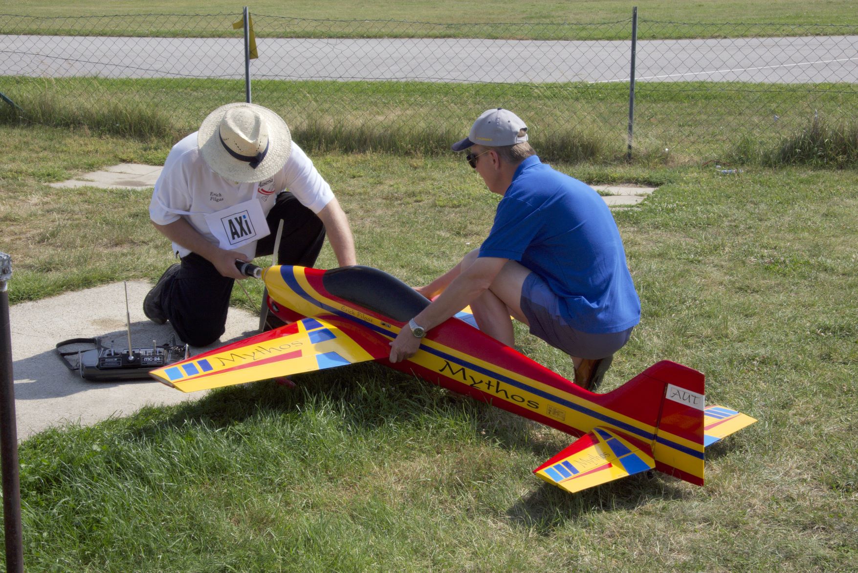 Beschreibung: Erich Filgas, AUT, beim Starten des Motors. Unterstützt wird er von Helmut Danksagmüller.