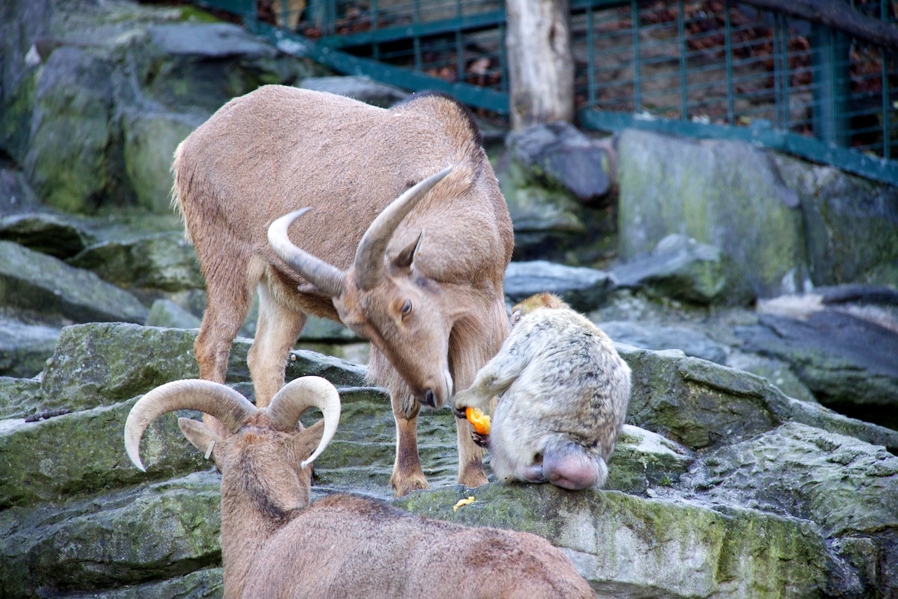 Berberaffe und Mähnenspringer